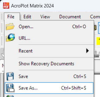 3. Now that a blank page/canvas is created in AcroPlot Matrix select File > Save As to save the document before creating any work. The filename and location don’t matter since this will only be the source file for creating/importing stamp artwork into the AcroPlot Matrix Stamp Palette later.