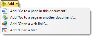 The default action of a Bookmark is to display the associated page in the main work area. Click the Add button to add or edit the actions with these commands: