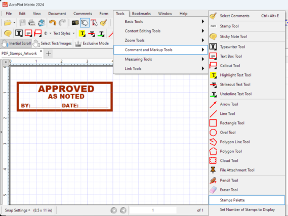 11. Select Tools > Commenting and Markup Tools > Stamps Palette