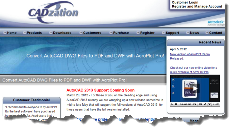 Click this link to access the CADzation's Technical Support website page. Information and help on this page include:
